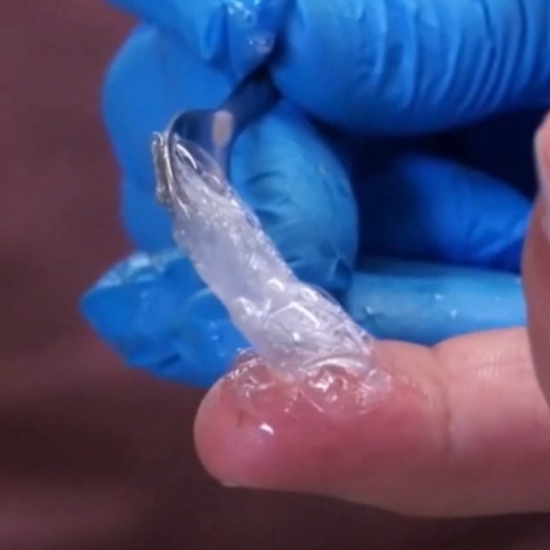 Ainsi, un mucus brut, très collant et visqueux, ne peut être intégré directement dans un produit de soin cosmétique. Ce mucus véritable, avec une haute viscosité, garantit une haute teneur en protéines d'intérêt. Il doit subir un traitement d'extraction à froid sous basse pression pour isoler les composés utiles qui sont fortement liés à l’état brut.