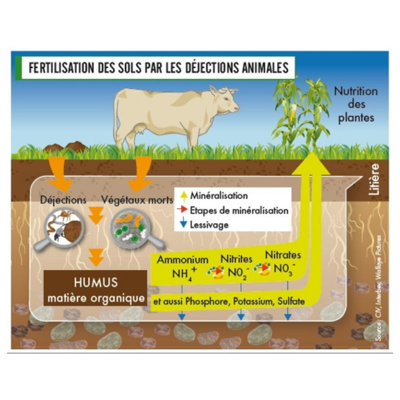 Riches en éléments essentiels pour les plantes, tels que l'azote, le phosphore et la potasse, ces matériaux restent dans le sol et ajoutent progressivement de l'humus au fil des ans. L'action graduelle des bactéries libère les nutriments nécessaires aux plantes de manière lente et constante, assurant ainsi une alimentation du sol sur plusieurs mois.