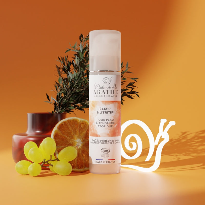 Chez Mademoiselle Agathe, notre crème élixir nutritif associe les bienfaits exceptionnels de la bave d’escargot à six actifs rigoureusement sélectionnés pour nourrir, apaiser et restaurer les peaux sensibles, déséquilibrées ou à tendance atopique. Sa formule concentrée aide à calmer les sensations d’inconfort tout en stimulant la régénération cellulaire pour une peau plus forte et mieux protégée.