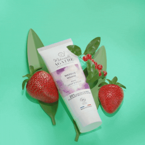 Le masque soin coup d'éclat est un masque crème, astringent, éclaircissant et régénérant adapté à tout type de peau. Grâce à la bave d’escargot (cicatrisant), les feuilles de fraisier (tonifiant) et l’algue chlorella (reminéralisant), il illumine les teints brouillés, et permet de lutter contre les taches pigmentaires ou cicatrices post-acné.