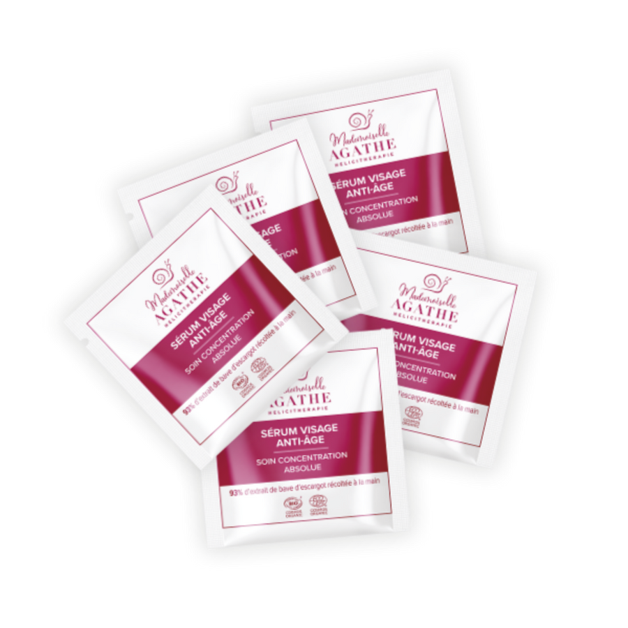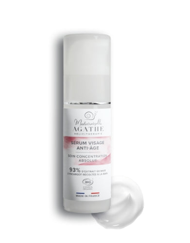 Un sérum pour le visage est un soin concentré en actifs, comme l'extrait de bave d'escargot (93% chez Mademoiselle Agathe). Il agit en complément de la crème pour renforcer son efficacité. Le sérum est spécialement conçu pour lutter contre la perte de fermeté et optimiser l'hydratation de la peau.