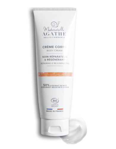 De composition très douce et non grasse, cette crème peut s’appliquer sur l’ensemble du corps. Elle contribue à restaurer une bonne hydratation cutanée à laquelle s’ajoutent des propriétés astringentes, adoucissantes et protectrices grâce au mucus d’escargot et à l’aloe vera. Elle nourrit en profondeur l’épiderme grâce au beurre de karité riche en acides gras et vitamine E afin d’assouplir et de régénérer les peaux sèches et ainsi contribuer à une restructuration cutanée qui donne un effet « seconde peau » laissant la peau douce et souple.