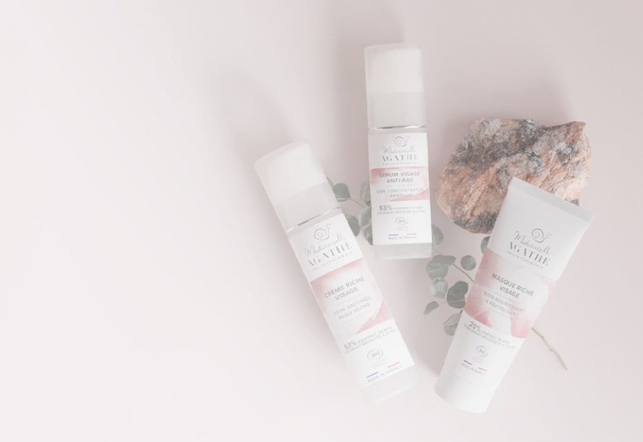 Premièrement, l'hydratation, et surtout une bonne nutrition matin et soir, en commençant par notre sérum anti-âge 30ml avec ses 93% de bave d’escargot, avant votre soin visage. Le sérum est exceptionnellement riche en extrait de bave d’escargot, reconnue pour stimuler la synthèse du collagène, de l’élastine, ainsi qu'en vitamines et autres protéines naturellement présentes dans le mucus d'escargot. Il apaise la peau, estompe les marques de fatigue et atténue les rides et ridules. Vous pourrez ainsi profiter d'une peau visiblement apaisée.