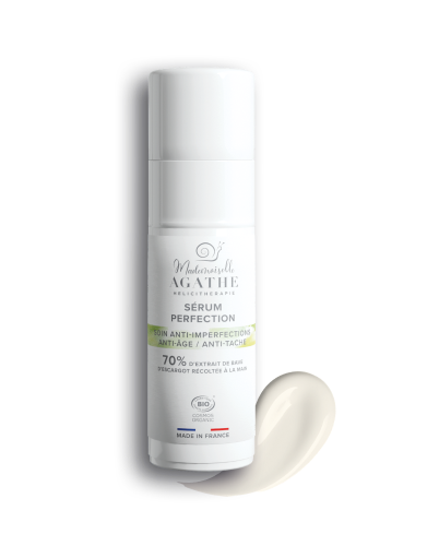Le SÉRUM PERFECTION contient plus de 70 % d’extrait de bave d’escargot, enrichi d’un complexe exclusif d’extraits végétaux et d’huiles rigoureusement sélectionnés. Cette formule experte agit comme un véritable soin multi-correcteur : elle atténue les irrégularités, estompe les taches pigmentaires et lutte efficacement contre les signes visibles du vieillissement, tout en apportant une hydratation profonde et durable.